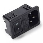 Chassis mount for three pin euro plugs with solder contacts and DPST switch, mountable in panels. Fuse not included.